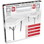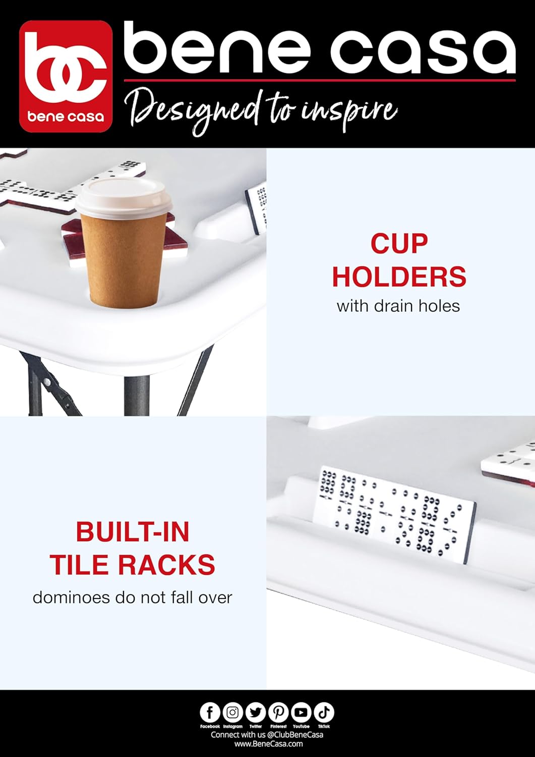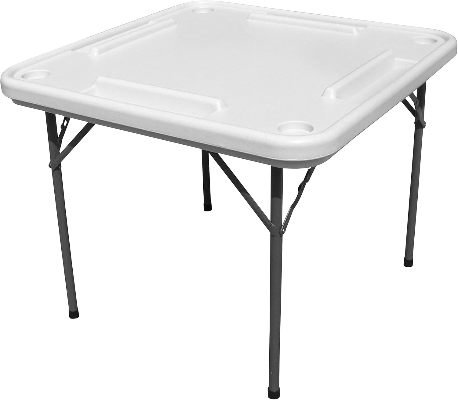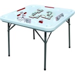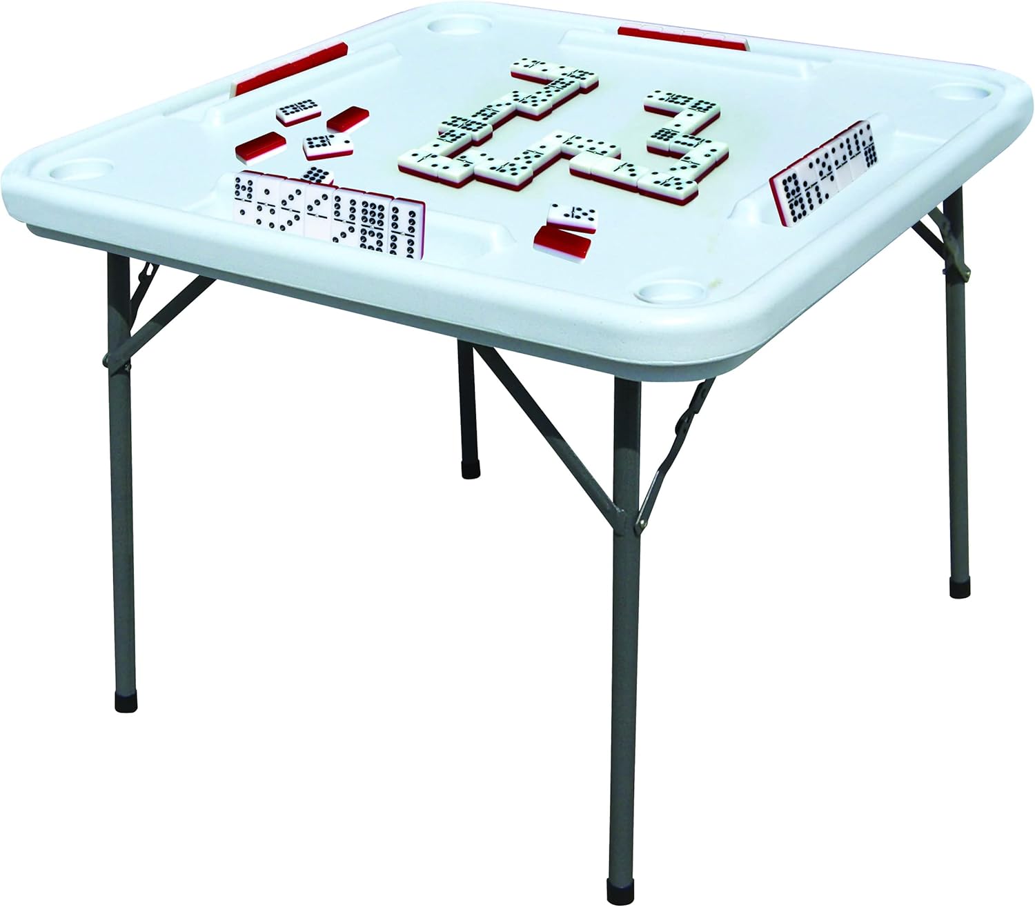 Blow Mold Domino Table; Folding metal legs for easy storage; Built in cup holders and tile/card holders at each players space; This table is perfect for scrabble, mahjong, board games, card games, and dominoes of course!