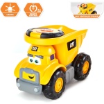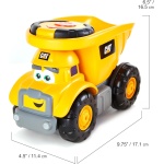 The CAT Construction Lil Movers Preschool RC dump truck toy is 10.5″ long and features a child friendly controller ideal for small hands. It is simple function (forward and reverse/turn). You can secure the controller onto the CAT Construction preschool RC dump truck when not in use. This preschool RC dump truck also features working headlights and requires 3AA batteries for the vehicle and 2 AAA batteries for the controller (not included).