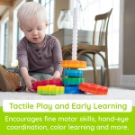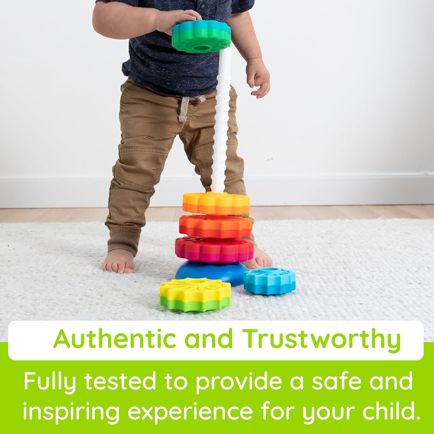 SUPPORTS SORTING AND COUNTING SKILLS: Toddlers practice sorting by color, shape, and size while stacking and spinning, reinforcing early counting skills in a playful manner