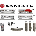 SET INCLUDES: (1) Santa Fe FT Diesel Locomotive, (2) Coach Cars, (1) Observation Car, (8) Curved O36 FasTrack sections, (2) Ten Inch Straight FasTrack sections, (1) LionChief FasTrack Terminal section, (1) Plug-Expand-Play Power Lock-on section, (1) Wall pack power supply, (1) LionChief remote control