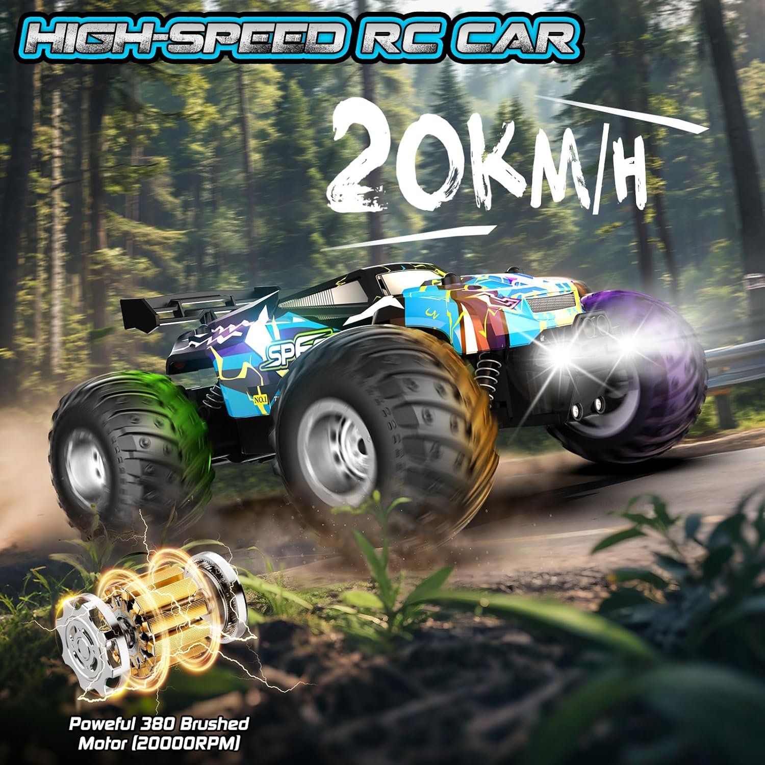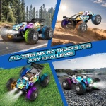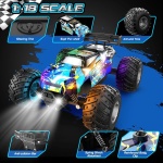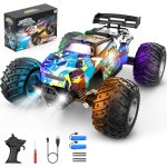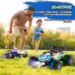 Powerful Motor System – Conquer Any Terrain with Ease: Powered by a high-performance RC 380 motor, this monster truck toys reaches speeds up to 20 km/h, delivering thrilling action every time. High-traction off-road tires provide excellent shock absorption, grip, and slip resistance. With dual motors, ball bearings, and independent suspension, this remote control car for boys 8-12 easily handles a variety of terrains—grass, sand, gravel, concrete, or backyard dirt