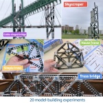 Do you ever wonder how bridges span huge distances and how skyscrapers stay standing? Structural engineers use physics and their knowledge of the properties of building materials and geometric shapes to design structures with sufficient strength and stability. With this kit of modular building pieces, you can learn the basics of structural engineering by conducting a series of 20 model-building experiments. Each model demonstrates a basic principle of mechanical physics or structural engineering in a hands-on way. Start out with small models that demonstrate how structural elements can be attached together to maximize the strength of a structure for a fixed amount of material used. Learn about basic structural elements including columns, beams, trusses, plates, arches, shells, and catenary. Explore the forces acting on structural components including tension, compression, shear, and bending. Move onto building more complex models of trusses, roofs, and small buildings. Experiment with different types of bridge construction: a truss bridge, arch bridge, cantilever bridge, rope bridge, and suspension bridge. Finally, build models of towering skyscrapers. What is the tallest tower you can build using only the pieces included in the kit? Learn about the strength and stiffness of materials. See how structural engineers optimize factors to maximize safety, and minimize cost and the risk of structural failure. A 36-page, full-color manual guides you through model building with step-by-step illustrated instructions.