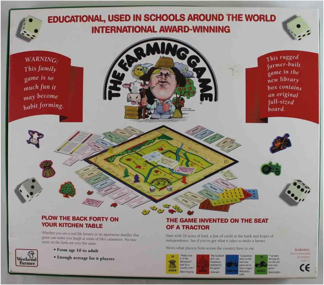 Whether you’re a real farmer or an urban dweller, you’ll find The Farming Game is an accurate description of the business risks and gambles of farming. Players begin the game with 5,000 money in debt with 20 acres of inherited farmland. As players plant crops and sell livestock, they slowly work their way to success…that is if the elements cooperate. Farming has never been this much fun. For 2 to 6 players ages 10 and up.