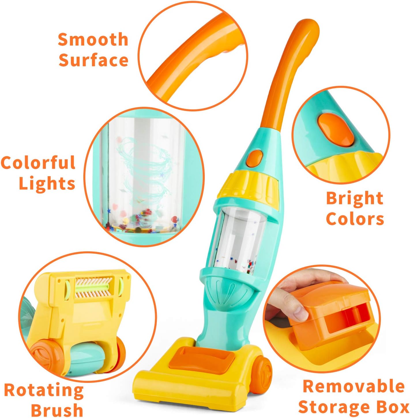 High Quality and Durable Material,This Vacuum Cleaner Toy sets is made of BPA-free, Non-toxic ABS plastic, no smell.completely safe vacuum cleaner toy for children